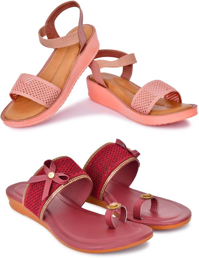 Women Wedges Sandal (Maroon , 6)