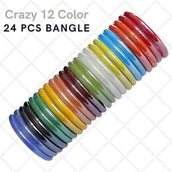 Material: Glass | Finish Type: Glossy | Pack of 24, Sleek, Light-Weight, Attractive, Glossy Kada Set, Features: Skin Friendly, Handcrafted, Ethnic, Original They are ideal to be worn during any festival, partywear, weddings., GREAT FOR GIFTING PURPOSES- Get this elegant set of jewelry for your loved ones on birthdays or anniversaries to see a broad smile on their faces. The intricate details done on the pieces provide the wearer with a stylish and elegant look and can be paired with any cocktail or party wears., Always keep these bangles in a safe box when not in use.