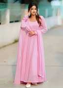 Solid Georgette Stitched Anarkali Gown (Pink)