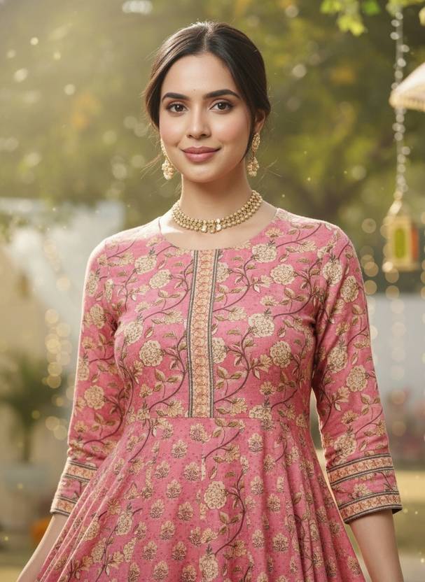 Viscose Rayon Stitched Anarkali Gown (Pink)