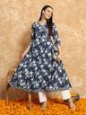 Sa Rasa Women Printed Anarkali Kurta (Blue)