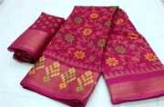 Saadhvi Printed Patola Cotton Linen Saree (Red)