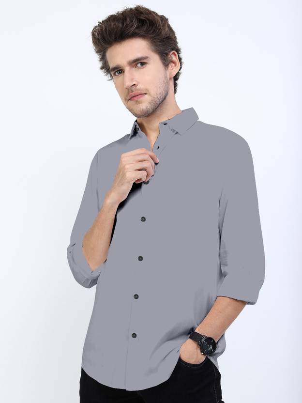 Men Regular Fit Solid Cut Away Collar Casual Shirt