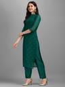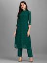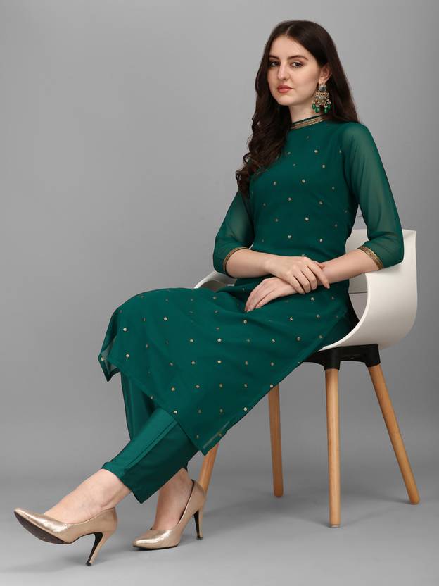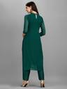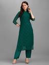 Saanjh Women Dark Green Embroidered Faux Georgette Readymade Straight Salwar Suit SetIntroducing our exquisite Georgette Kurta Set, a perfect blend of elegance and comfort for the modern woman. This enchanting ensemble includes a gracefully designed georgette kurta paired with complementing pants, creating a contemporary and stylish look. The kurta features intricate detailing, making it suitable for various occasions.