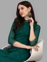Kurta Color : Dark Green | Kurta Fabric : Faux Georgette | Kurta Work : Embroidered & Sequinned | Kurta Pattern : Sequin with Side Slit | Kurta Length : 45 Inches | Sleeve Length : 16 Inches | Inner : Satin Silk | Sleeve type : 3/4th Sleeves | Kurta Neck : Round Neck | Bottom Fabric : Satin Silk |Bottom Color : Dark Green | Bottom Pattern : Solid | Bottom Type : Pant.