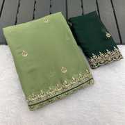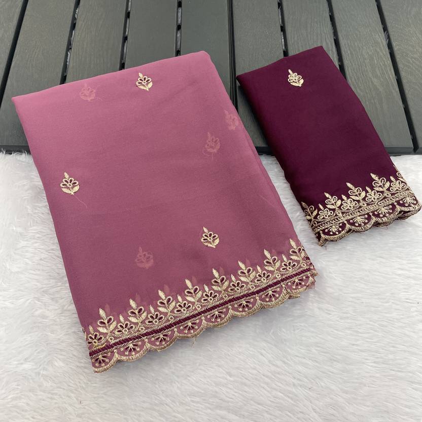 TRISHUL 3- The Star Georgette Rose Gold Threading Zari Embrodiery Saree