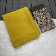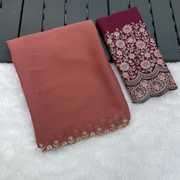 TITAN 5- THE STAR GEORGETTE EMBRODIERY BORDER SAREE WITH CONTRAST BITS BLOUSE