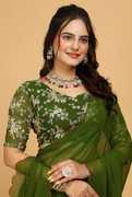 saanvi Solid/Plain Bollywood Georgette Saree (Green)
