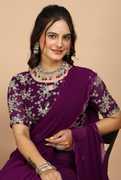 DHANUSH 8- THE GEORGETTE ARCO BORDER SAREE WITH MATCHING FLORAL EMBROIDERY SEQUINS BLOUSE