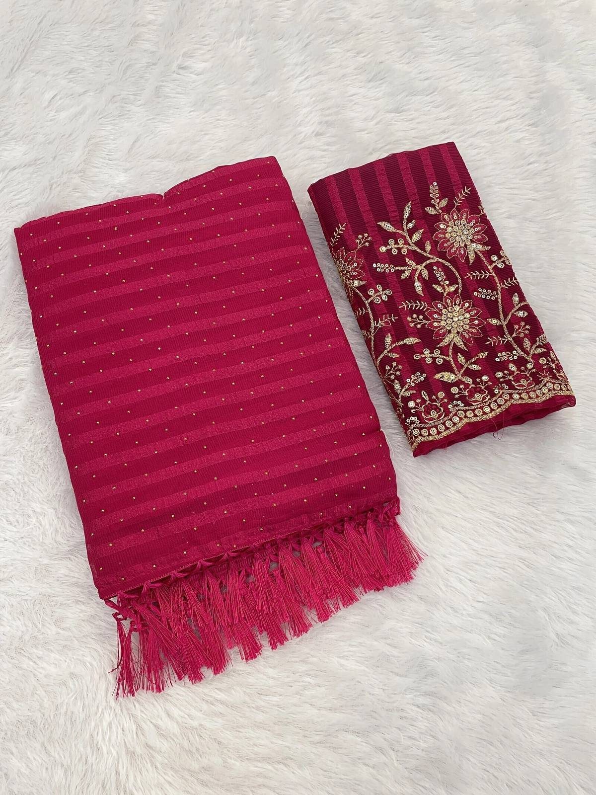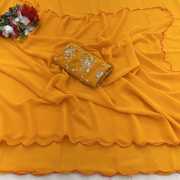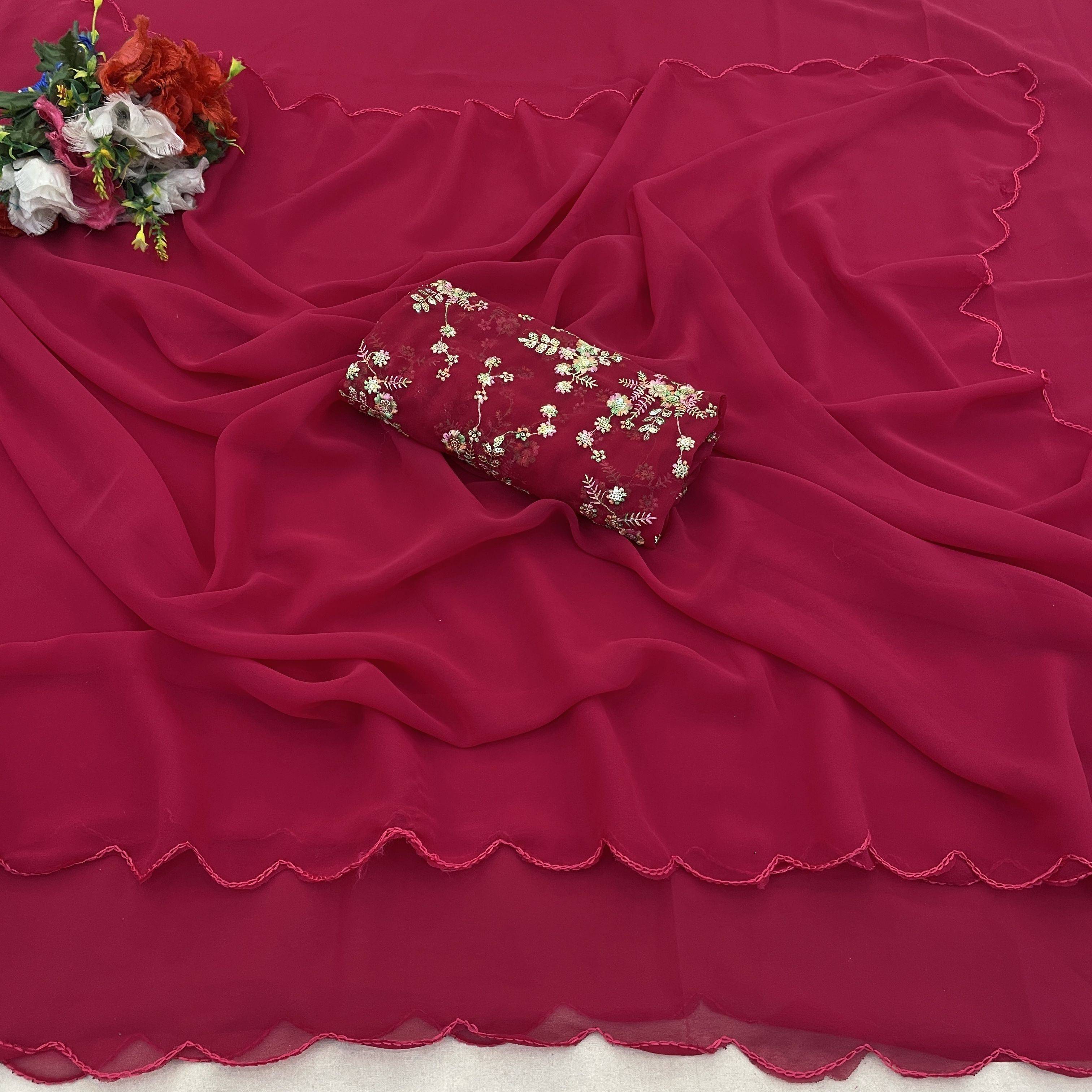 saanvi Solid/Plain Bollywood Georgette Saree (Red)
