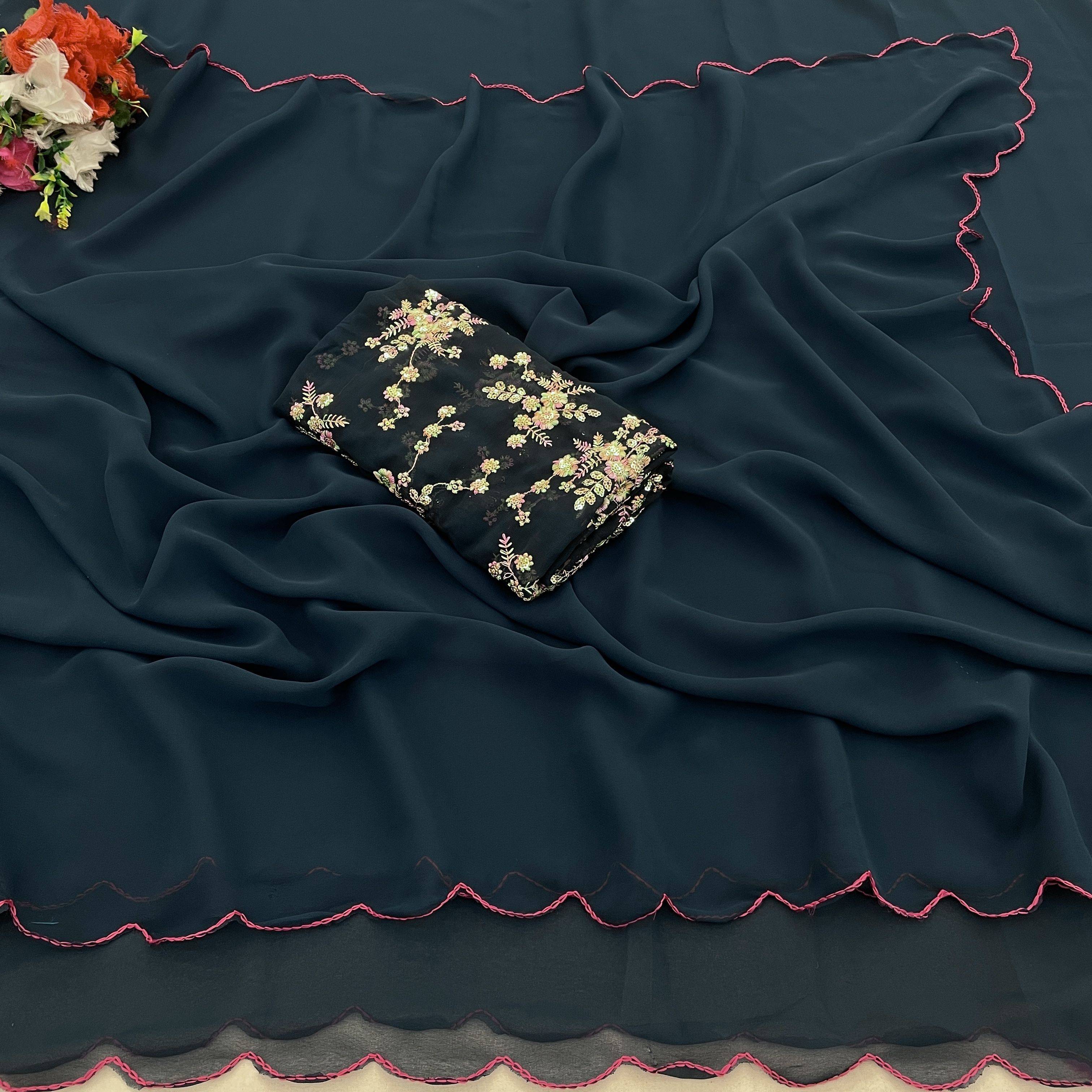 saanvi Solid/Plain Bollywood Georgette Saree (Blue)