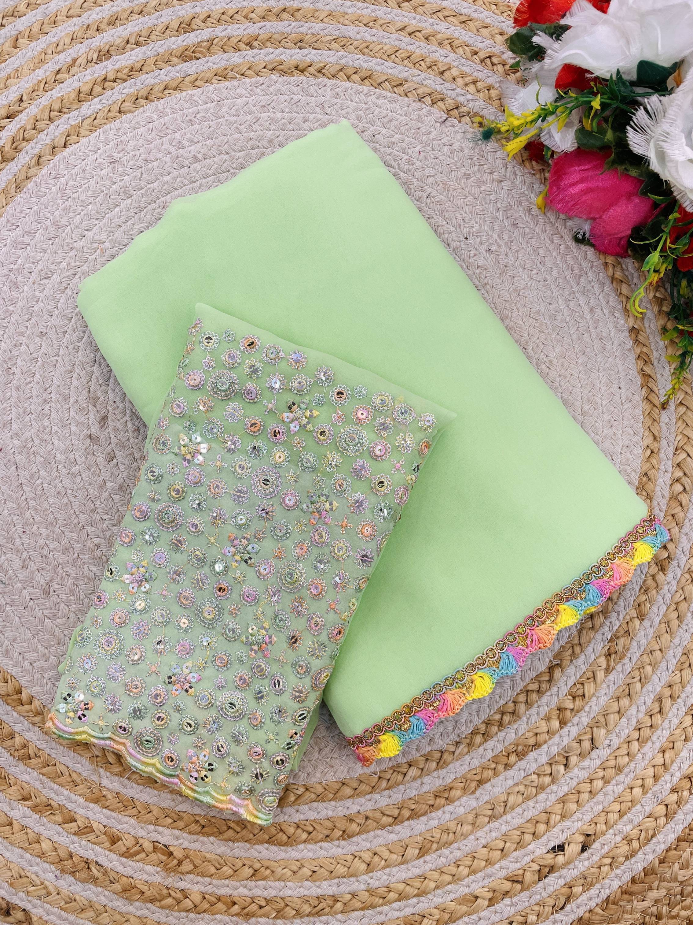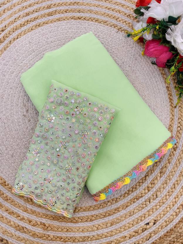 saanvi Solid/Plain, Embroidered Bollywood Georgette Saree (Light Green)