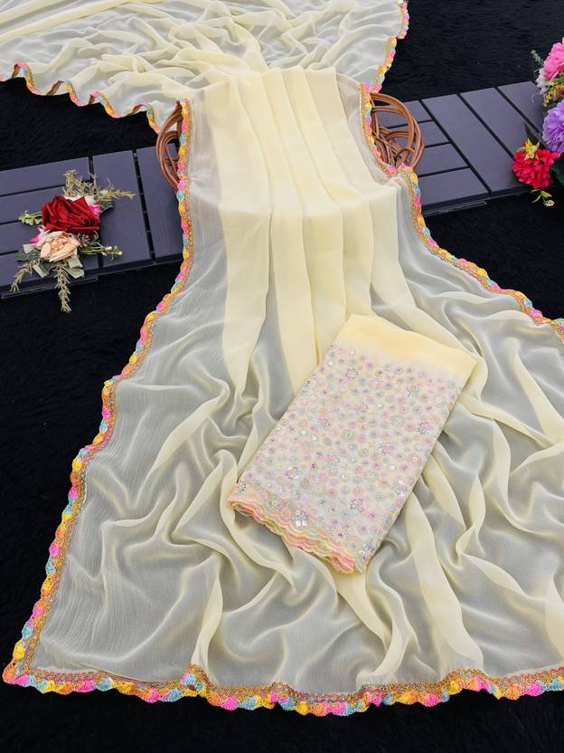 GEORGETTE LACE EMBRODIERY SAREE WITH MATCHING FLORAL EMBRODIERY CODING SEQUINS BLOUSE (KIA2)