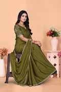 Solid/Plain, Embroidered Bollywood Silk Blend Saree (Green)