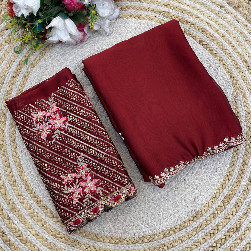 saanvi Solid/Plain, Self Design Bollywood Silk Blend Saree (Pack of 2, Maroon)