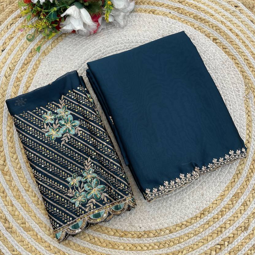 saanvi Solid/Plain, Self Design Bollywood Silk Blend Saree (Blue)