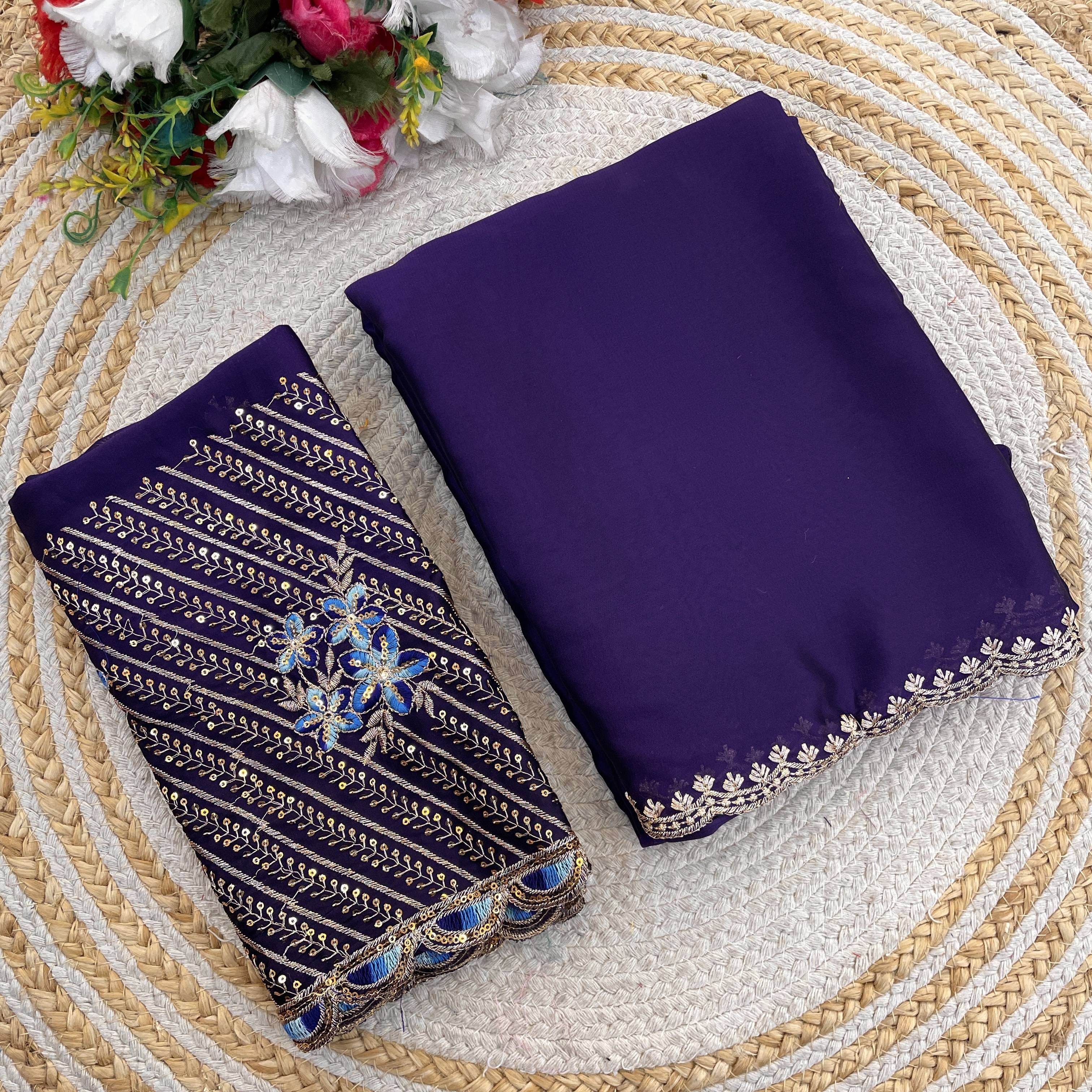 saanvi Solid/Plain, Self Design Bollywood Silk Blend Saree (Purple)