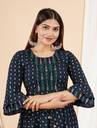 This elegant gown is made from a soft, comfortable fabric. The material drapes well, adding to this gown’s overall elegance and ensuring a comfortable wearing experience. The choice of material not only enhances comfort and breathability but also aligns well with this gown’s festive and party-ready design.