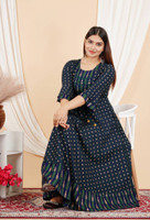 Featuring a printed pattern, this women’s gown offers a visually appealing design with various motifs that catch the eye. The print adds character to the gown, making it a lively choice for both party and festive occasions. The intricate details of the print enhance the overall aesthetic, ensuring this gown stands out in a crowd and complements different styles and preferences.