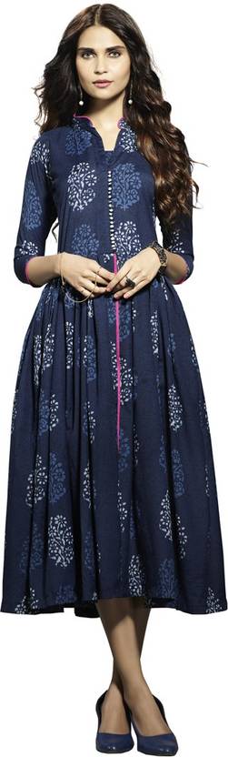 SAARA Women Printed, Block Print Cotton Blend Anarkali Kurta (Blue)