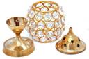 SAARTHI Brass Crystal Oil Lamp Tea Light Holder Lantern Oval Shape Brass Table Diya (Height: 4 inch)