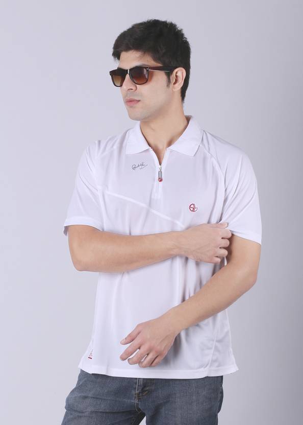 Sachin Tendulkar Men Solid Polo Neck Polycotton White T-Shirt