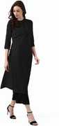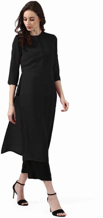 Women's Solid Rayon Casual 3/4 Sleeves Straight Kurta (Black)