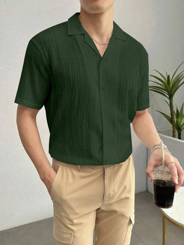 Men Slim Fit Self Design Lapel Collar Casual Shirt