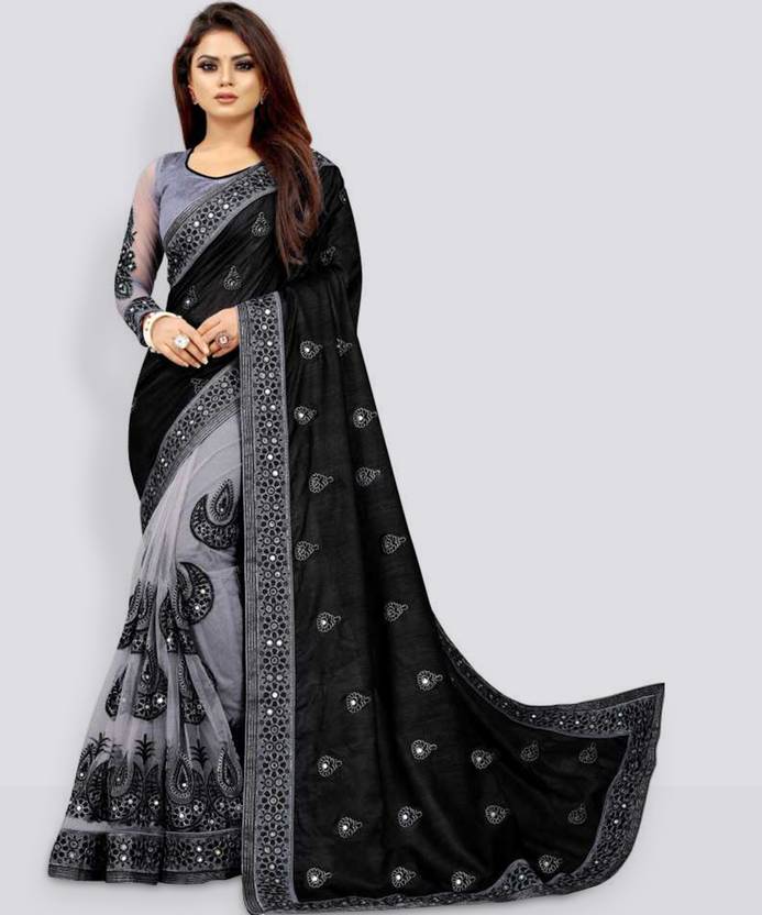 Embellished Bollywood Net Saree (Color: Black & Grey) - A Fusion of Glamour and Grace