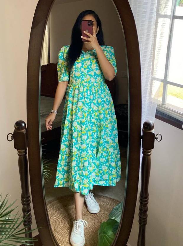 sadhnazon Women A-line Green Midi/Calf Length Dress