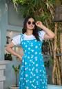 Elevate your casual fashion game with this chic and comfortable black floral dungaree dress with white puff-sleeve top – a style that blends Indian comfort with international trends! The sleeveless dungaree features a playful white daisy print all over, exuding charm and freshness. Paired with a cute white frilled cotton top, it creates a youthful, trendy look perfect for college days, vacations, brunch outings, or casual get-togethers.