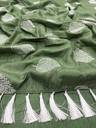 Foil print embellished like embroidered dola silk blend saree with tassel pallu