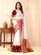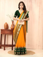 Featuring an intricate zari work woven along the border and pallu, this women's saree may introduce a rich, luminous effect to your overall look. The fine shimmer of the zari can gently reflect light, offering a graceful accent that elevates this saree’s traditional appeal. Its woven pattern may provide added texture and visual interest, allowing the fabric to stand out in subtle and striking ways. With its ornate yet classic detailing, this saree might suit a variety of occasions where elegance is appreciated.