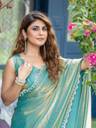 Sadika Fendy Space silk saree with Swarovski work & shiny metal lace for Diwali