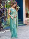 Presents New Collection of saree Which is made from soft Fendy Space silk in that falls beautifully and feels light to wear, making it perfect for Daily wear and festive days. The border is Decorate with Swarovski diamond work and Shiny metal embellished lace, it giving a just the right sparkle without looking overdone. Shades like rose pink, aqua green and golden Grey add a graceful charm, so you can pick the one that matches your occasion. Another it’s Diwali celebrations, a wedding function or an evening party, this saree will keep you elegant and feeling comfortable with Beautiful look. Each saree comes with a matching blouse fabric, so you get a complete look ready for Modern look and styling. If you are looking for something festive yet classy, this saree is a beautiful pick which is perfect to gift or to treat yourself this season.