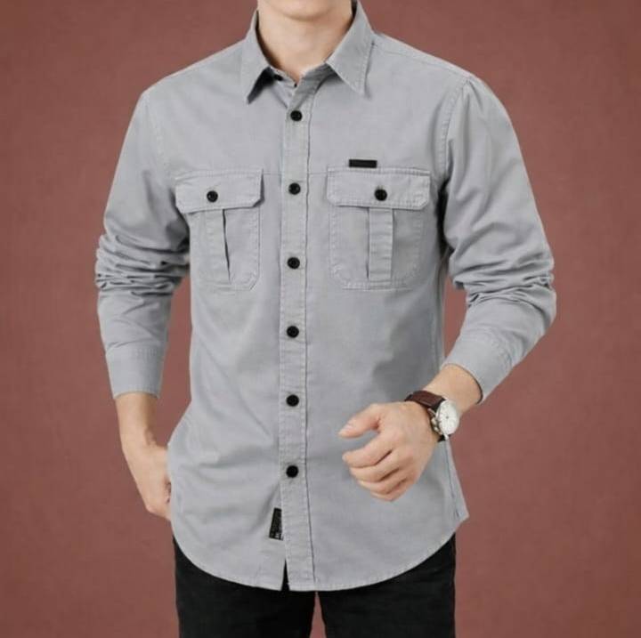 Solid, Double Flap Pocket, Utility, Contemporary Grey