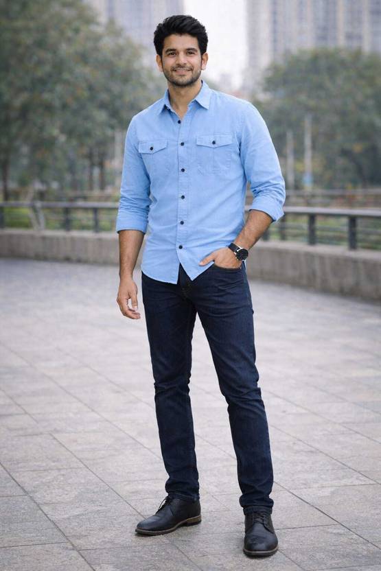SADO Men Solid Casual Light Blue Shirt