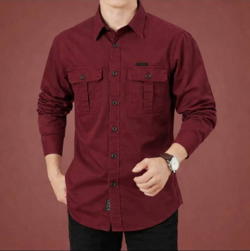 SADO Men Solid Casual Maroon Shirt