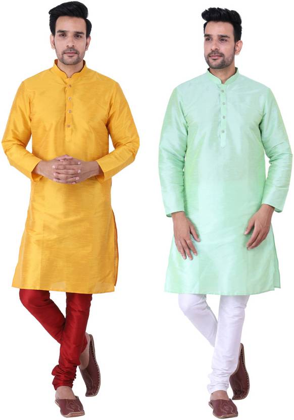 This Traditional Indian Combo 2 Set Kurta Pyjama Only. 4 Inch Loose fitting sleeves and slits along the sides allow for an easy fit and let air circulate freely through the garment. This is combo kurta Pyjama set has a relaxed fit through the seat for absolute comfort. Regular comfortable fitting makes it a great wear. This is Ethnic wear Kurta Pyjama Combo Set You can select your size on the behalf of your chest size.