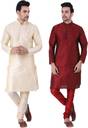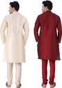 This Traditional Indian Combo 2 Set Kurta Pyjama Only. 4 Inch Loose fitting sleeves and slits along the sides allow for an easy fit and let air circulate freely through the garment. This is combo kurta Pyjama set has a relaxed fit through the seat for absolute comfort. Regular comfortable fitting makes it a great wear. This is Ethnic wear Kurta Pyjama Combo Set You can select your size on the behalf of your chest size.