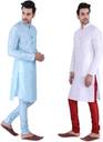 This Traditional Indian Combo 2 Set Kurta Pyjama Only. 4 Inch Loose fitting sleeves and slits along the sides allow for an easy fit and let air circulate freely through the garment. This is combo kurta Pyjama set has a relaxed fit through the seat for absolute comfort. Regular comfortable fitting makes it a great wear. This is Ethnic wear Kurta Pyjama Combo Set You can select your size on the behalf of your chest size.