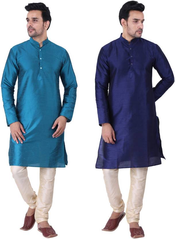 This Traditional Indian Combo 2 Set Kurta Pyjama Only. 4 Inch Loose fitting sleeves and slits along the sides allow for an easy fit and let air circulate freely through the garment. This is combo kurta Pyjama set has a relaxed fit through the seat for absolute comfort. Regular comfortable fitting makes it a great wear. This is Ethnic wear Kurta Pyjama Combo Set You can select your size on the behalf of your chest size.