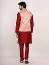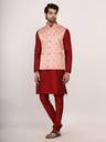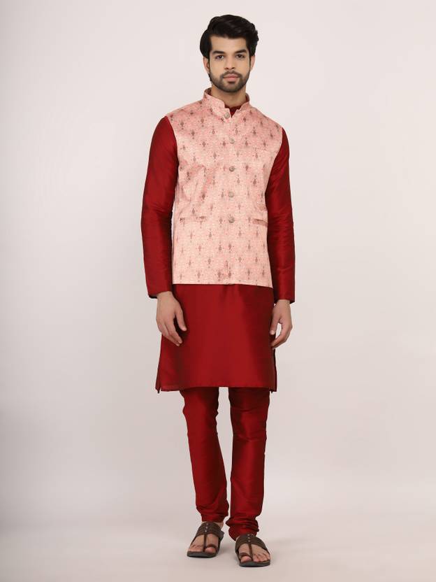 A kurta pajama paired with a Nehru jacket is a classic and stylish ensemble that blends traditional Indian attire with a touch of modern elegance. The kurta is a long, loose-fitting tunic that typically reaches below the knees. It is made from Dupuion SIlk Kurta Pajama and Satin Fabric used in Nehru Jackat. The pajama, also known as pyjama or churidar, is the bottom part of the attire. It is usually straight-cut and loose-fitting, providing comfort and ease of movement. Named after Jawaharlal Nehru, India's first Prime Minister, the Nehru jacket is a sleeveless, hip-length jacket. It is typically tailored with a mandarin collar that stands up straight, distinguishing it from Western-style jackets.Together, the kurta pajama with a Nehru jacket creates a polished and sophisticated appearance suitable for formal occasions such as weddings, festivals, or cultural events.