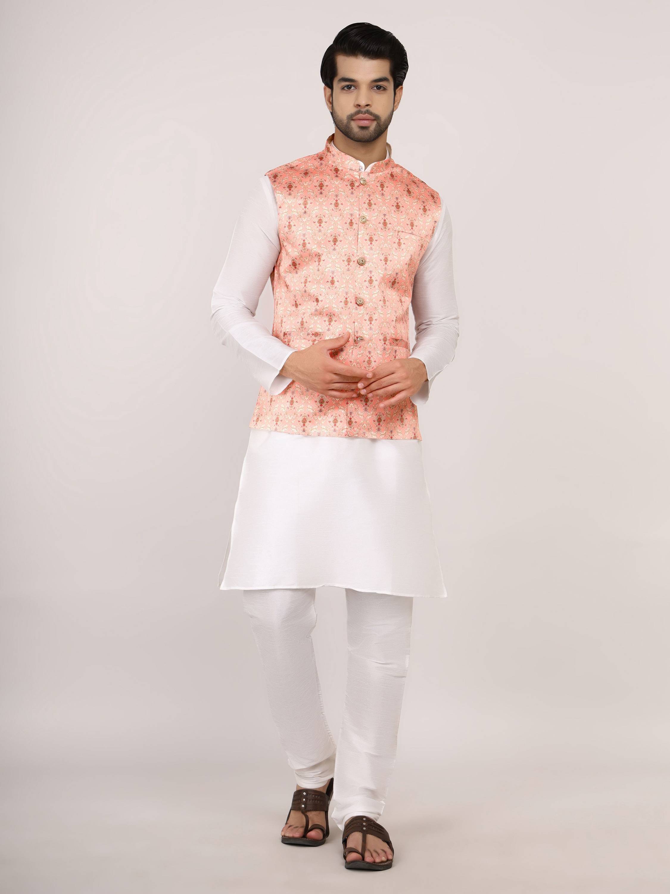 Silk Blend Kurta Pajama with Satin Print Modi Jacket Set