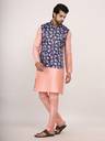 Redefine tradition with a modern twist. This set pairs the timeless comfort of a silk-blend kurta pajama with a vibrant, printed Nehru jacket for a look that is both sharp and spirited. The blend of fibers offers a premium sheen without the weight, keeping you cool and crease-free from the morning ceremony to the late-night dinner. Whether it's a garden party or a festive brunch, the intricate print on the waistcoat adds a layer of curated style to your wardrobe.