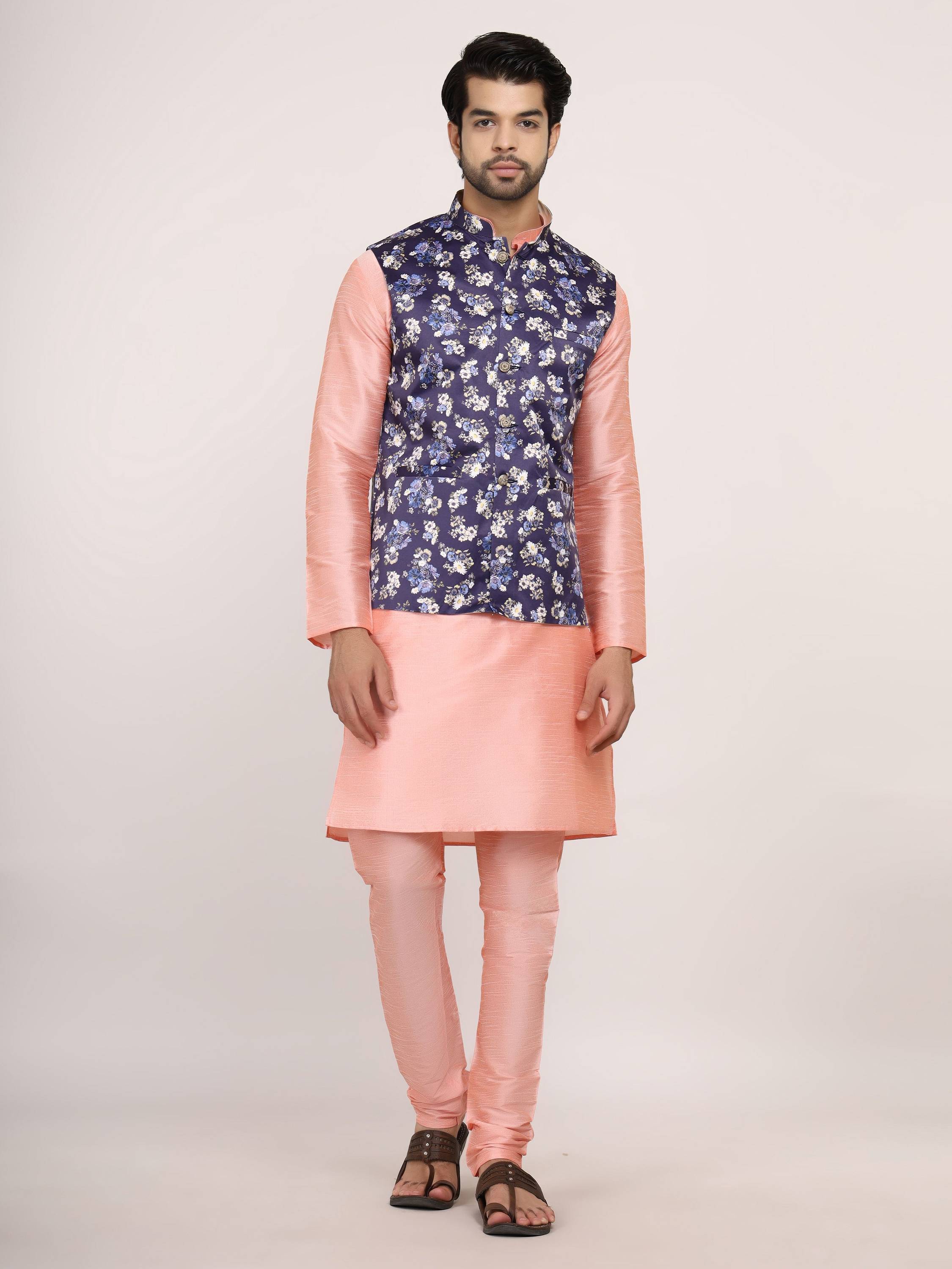 Silk Blend Kurta Pajama with Satin Print Modi Jacket Set