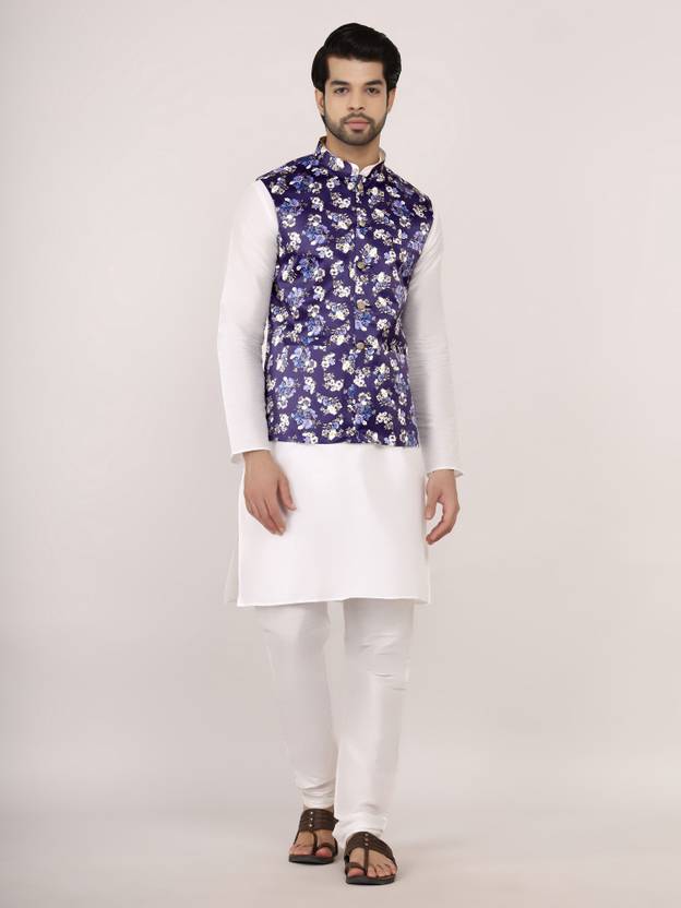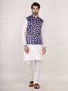 Silk Blend Kurta Pajama with Satin Print Modi Jacket Set