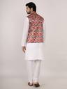 Silk Blend Kurta Pajama with Satin Print Modi Jacket Set