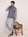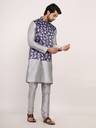 Silk Blend Kurta Pajama with Satin Print Modi Jacket Set