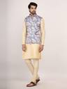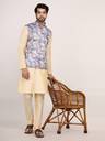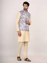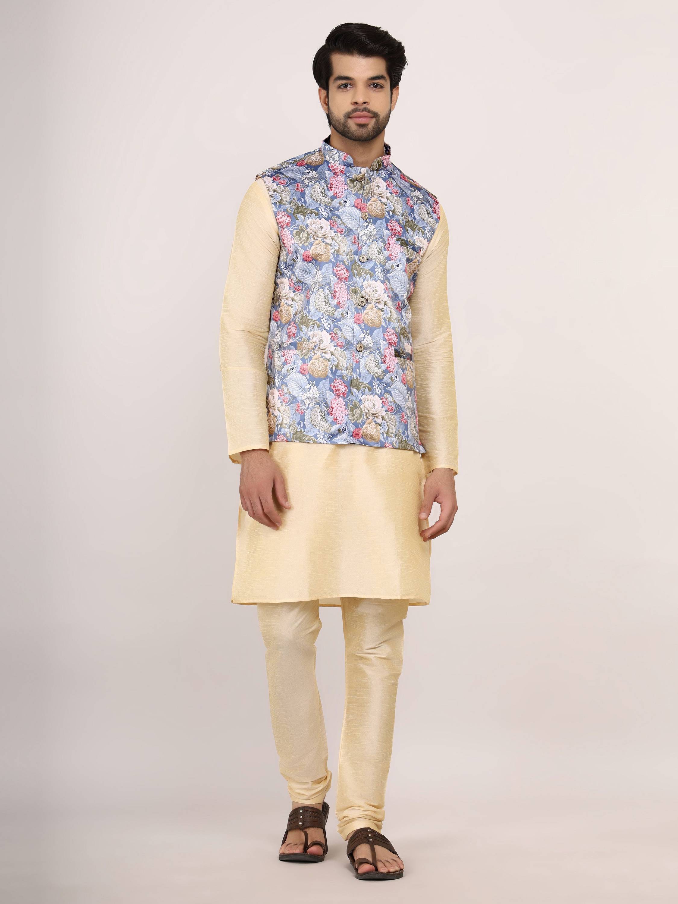 Silk Blend Kurta Pajama with Satin Print Modi Jacket Set